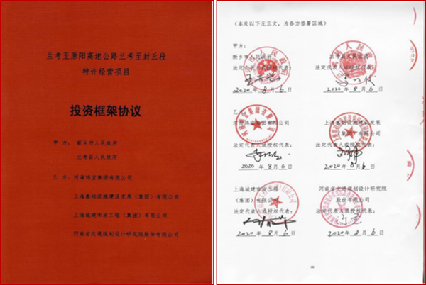 8 月 6 日,新鄉市政府、蘭考縣政府與河南鴻寶集團聯合體正式簽訂蘭考至原陽高速公路蘭考至封丘段特許經營項目(簡稱東壩頭黃河大橋項目)《投資框架協議》,本次簽約標志著河南鴻寶集團聯合體正式成為東壩頭黃...