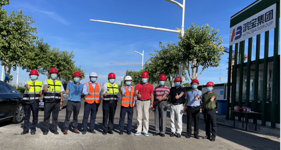 2021年9月3日上午8時,集團公司袁董事長在海南鴻寶投資控股有限公司總經理王國慶、副總經理王海和項目總監蘇前威的陪同下,蒞臨鴻寶集團海南自貿港投資總部項目指導工作,并對代建公司楷林團隊和總承包單位中建八局一公司進行了親切慰問。