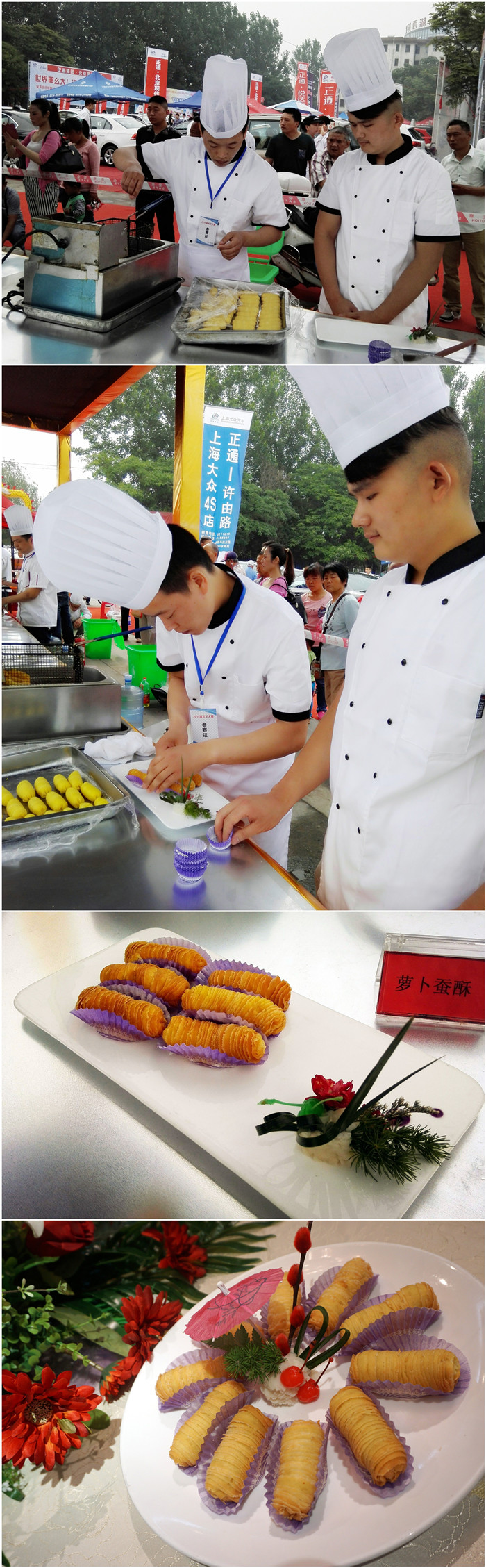 2015年5月29日,由許昌日?qǐng)?bào)社主辦,河南省體育彩票管理中心許昌分中心協(xié)辦的“2015許昌面點(diǎn)王”大賽在許昌體育場(chǎng)隆重舉行,市區(qū)20多家知名酒店派出了多名面點(diǎn)師參賽。參賽選手個(gè)個(gè)技藝精湛,通過(guò)炸、煮、蒸、烤的方式,烹制出了多道面點(diǎn)。最終我酒店參賽選手田大祺制作的蘿卜蠶酥,以其選料的養(yǎng)生化、出品的精細(xì)化、口感的酥潤(rùn)化在眾多作品中脫穎而出,獲得“2015許昌面點(diǎn)王”金獎(jiǎng)。目前鴻寶大酒店二樓粵川美食軒餐廳正在熱推此作品。