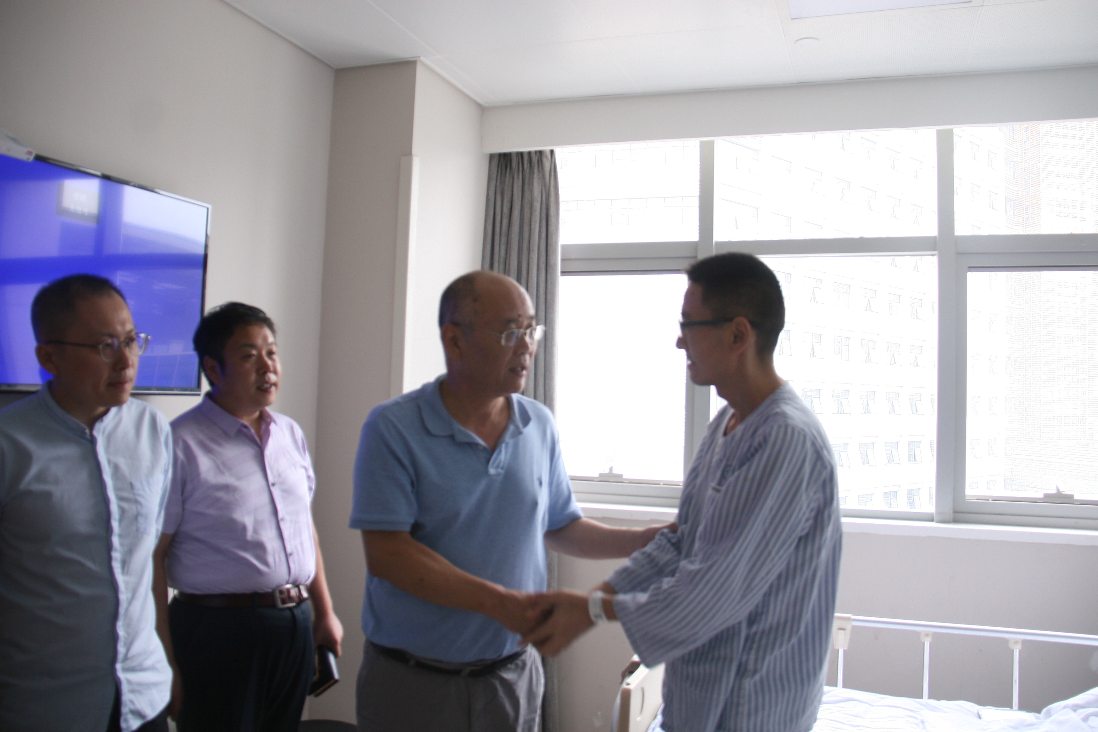 鴻寶集團黨委書記鄧和平及各成員企業(yè)代表一行前往醫(yī)院看望寇小四同志