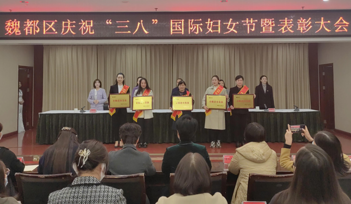 2023 年 3 月 3 日上午,許昌市魏都區慶祝“三八”國際婦女節暨表彰大會在魏都區政府會議室隆重召開。酒店榮獲魏都區“巾幗建功先進集體”,酒店總經理裴蕊女士出席了本次表彰大會。