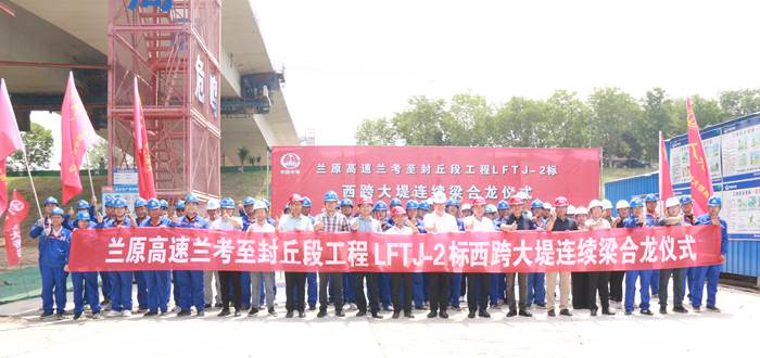 6月6日上午十一點,西跨大堤橋連續梁合龍儀式在黃河西大堤舉行。中鐵大橋局集團一公司黨委書記、執行董事錢兵,項目公司總經理劉英、副總經理韓宏志、常務副總經理黃欽、財務總監王龍河、總工程師謝理洲及各參建單位負責人出席活動。