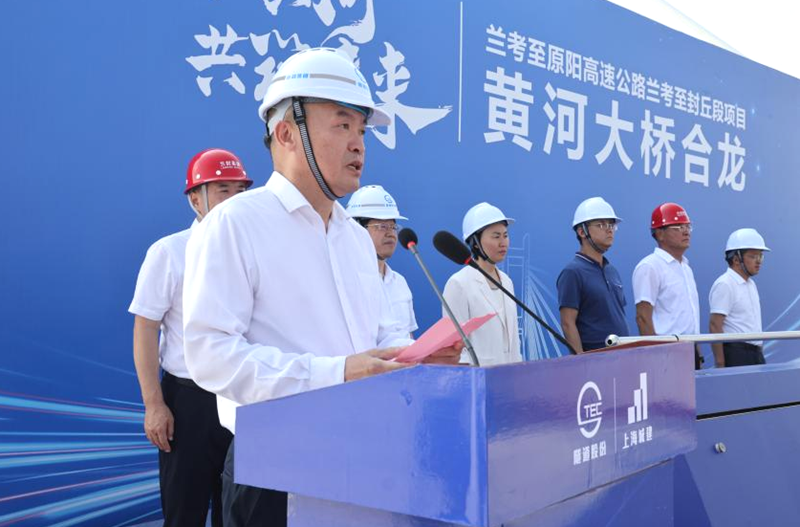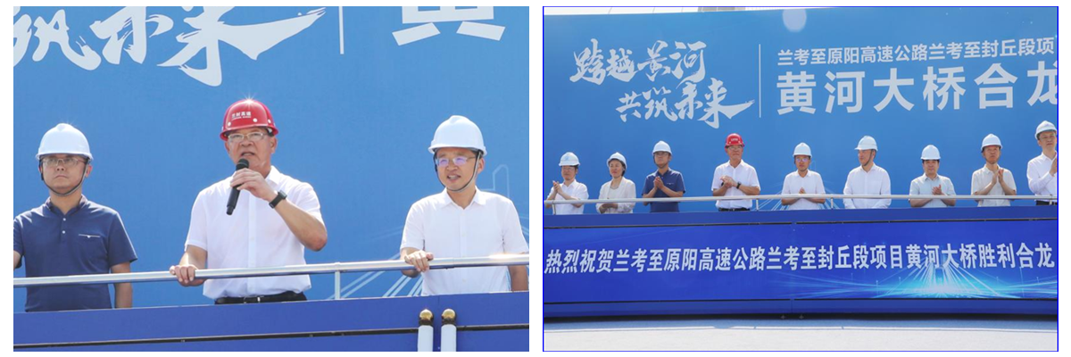 7月28日上午 9點(diǎn)28分,蘭原高速蘭考至封丘段黃河特大橋主橋合龍儀式在項(xiàng)目現(xiàn)場隆重舉行。開封市委常委、蘭考縣委書記陳維忠,開封市交通運(yùn)輸局副局長韓國慶,新鄉(xiāng)市交通運(yùn)輸局副局長強(qiáng)勇,封丘縣縣長王振海,蘭考縣副縣長李青,上海城建集團(tuán)副總裁孫桂峰,河南鴻寶集團(tuán)董事長、項(xiàng)目公司董事長袁桂寶,上海城建市政集團(tuán)黨委書記、董事長董澤龍,上海城建集團(tuán)中原區(qū)域總部黨委副書記、總經(jīng)理丁煒等領(lǐng)導(dǎo),以及項(xiàng)目業(yè)主單位、施工單位、監(jiān)理單位等項(xiàng)目參建人員及嘉賓共同見證了這一歷史性時(shí)刻。